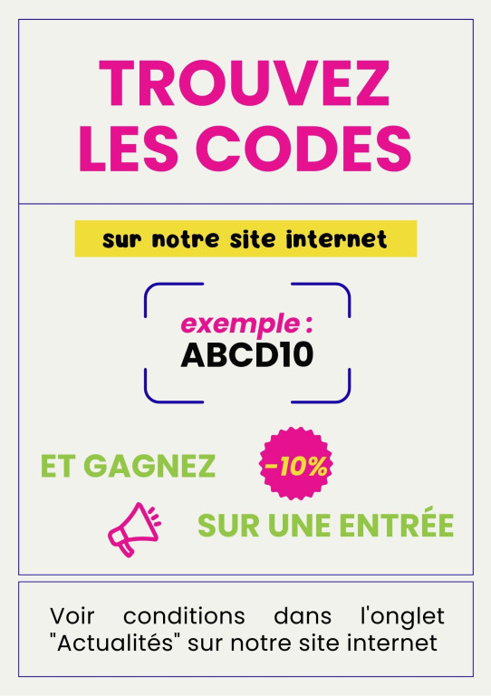 - Un code = -10% sur les entrées achetées sur le site (hors goodies et anniversaires)