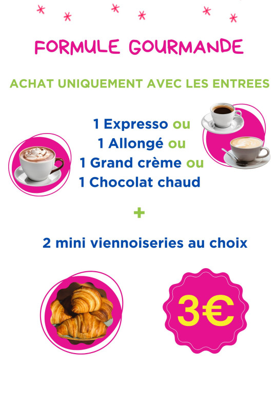 Dès votre arrivée nous vous proposons l'entrée avec le goûter pour seulement 3.00€ de plus.