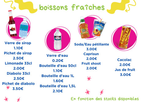 - 1 verre de sirop parfum au choix (33cl) ou une bouteille d'eau (50cl)
